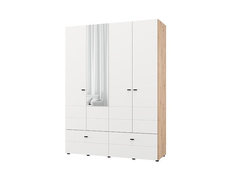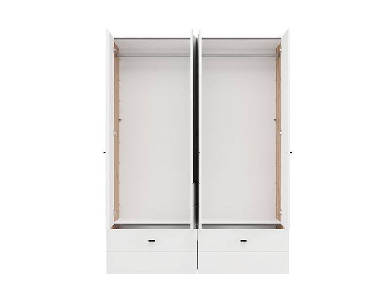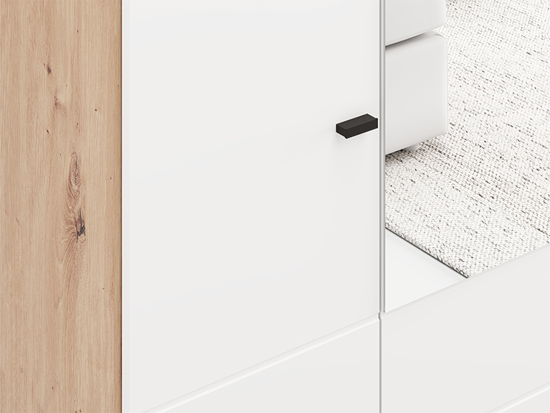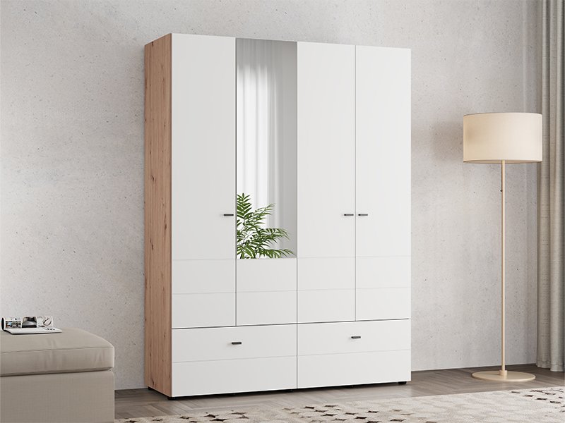 Ormar NEVIS 4K2F1O h207, u kombinaciji artisan hrast i opak belog dekora, predstavlja funkcionalno i moderno rešenje za organizaciju garderobe. Upotrebni prostor obuhvata dvokrilni deo sa garderobnom šipkom, dvokrilni deo sa pregradama i dve prostrane duboke fioke, omogućavajući praktičnu i preglednu organizaciju odeće i dodataka. Ogledalo dodatno doprinosi funkcionalnosti i vizuelno oplemenjuje prostor. Postoji mogućnost dodavanja seta polica za još bolju organizaciju unutrašnjeg prostora. Ormar NEVIS 4K2F1O h207 pripada kolekciji NEVIS i može se kombinovati sa ostalim modelima iz iste linije.