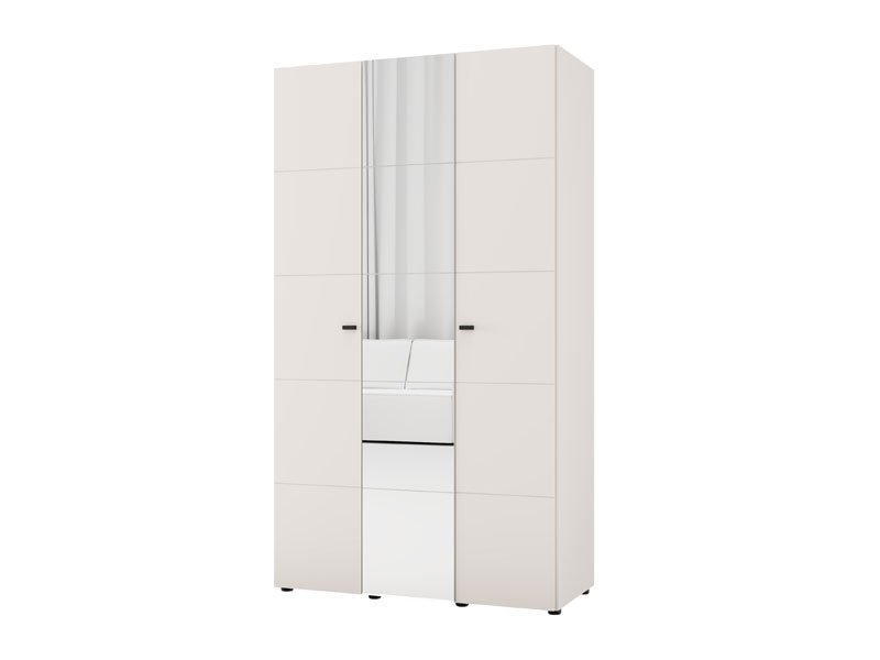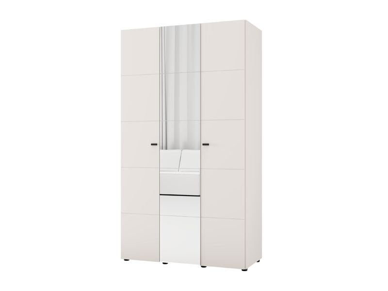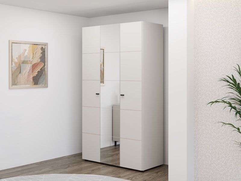 Ormar SALAMIS 3K1O h207, izrađen u elegantnom kašmir dekoru, doprinosi smirenom i modernom izgledu spavaće sobe, dok ogledalo na srednjem frontu dodatno unapređuje funkcionalnost i vizuelni doživljaj prostora.