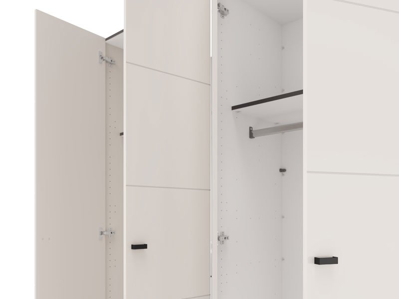 U svojoj osnovnoj formi, upotrebni prostor četvorokrilnog ormara organizovan je kroz jedan dvokrilni deo sa garderobnom šipkom za odlaganje odeće, kao i drugi dvokrilni deo sa policama, koji omogućava pregledno skladištenje garderobe i dodataka. Postoji mogućnost naknadne ugradnje seta polica radi još bolje prilagodljivosti i organizacije prostora.