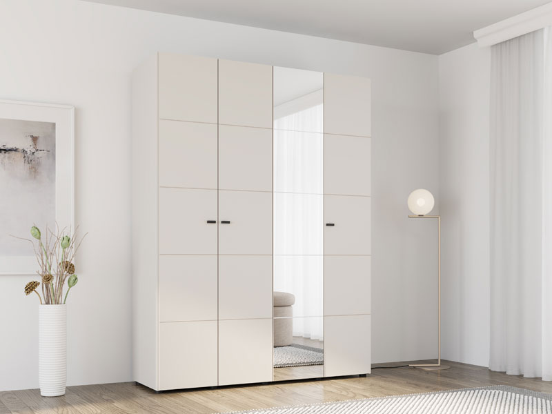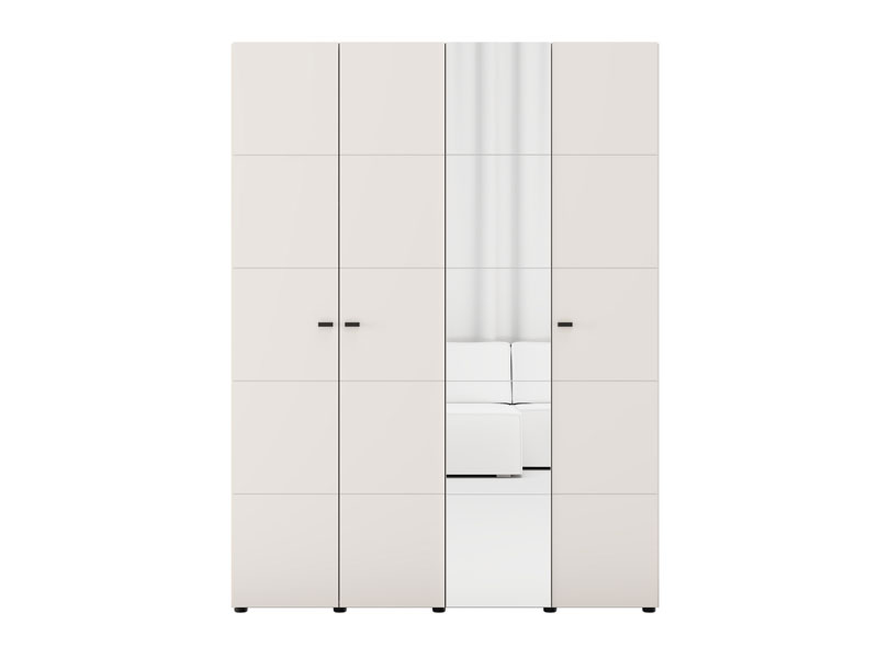 Ormar SALAMIS 4K1O h207, izrađen u elegantnom kašmir dekoru, doprinosi smirenom i modernom izgledu spavaće sobe, dok ogledalo na jednom frontu dodatno unapređuje funkcionalnost i vizuelno proširuje prostor.