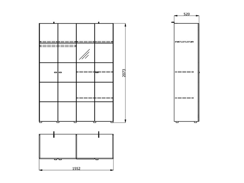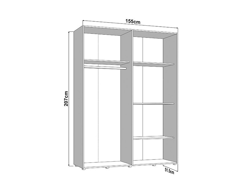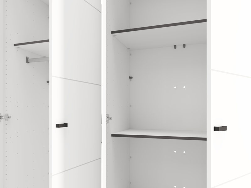 U svojoj osnovnoj formi, upotrebni prostor četvorokrilnog ormara organizovan je kroz jedan dvokrilni deo sa garderobnom šipkom za odlaganje odeće i drugi dvokrilni deo sa policama, koji omogućava pregledno skladištenje garderobe i dodataka. Postoji mogućnost naknadne ugradnje seta polica radi još bolje prilagodljivosti i organizacije prostora.