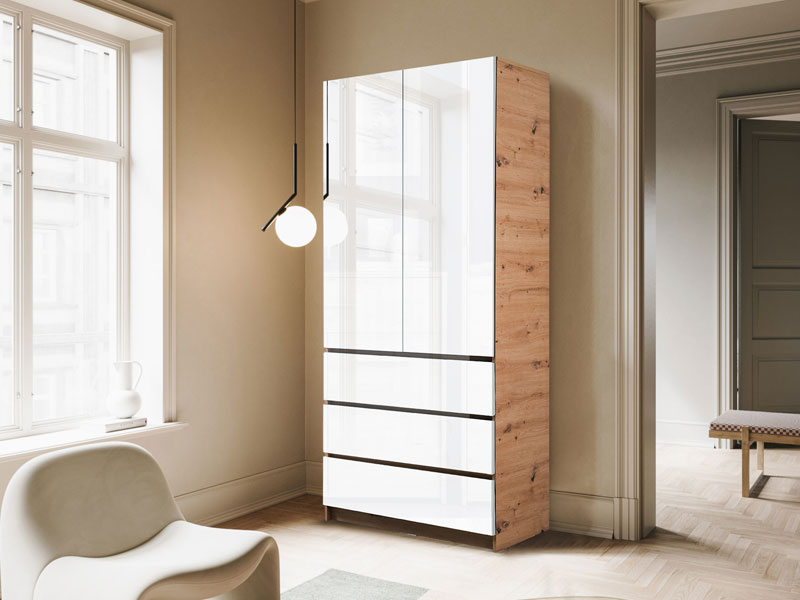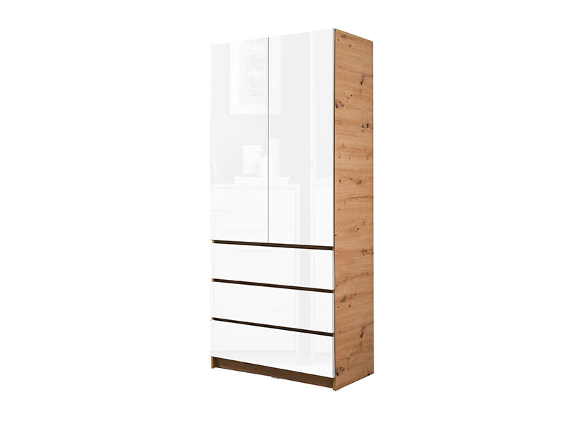 Tačan naziv dezena: korpus iverica artisan, front iverica bela sjaj. Praktični model ormara SEA 2V3F sa garderobnom šipkom, policama i tri fioke, doprineće boljoj organizaciji prostora.