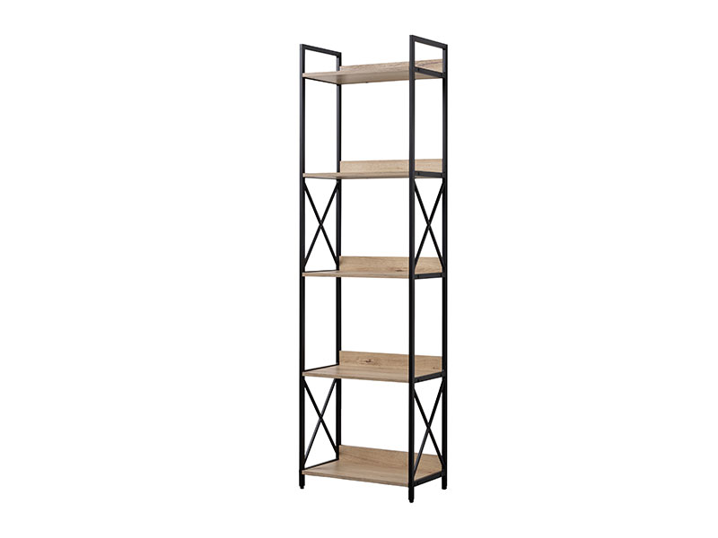 Tačan naziv dezena: konstrukcija metal crna, police iverica natur M49. Otvorena polica BS-N2210 unosi jedinstvenu estetiku u koncept životnog prostora zahvaljujući efektnom spoju polica u natur dekoru drveta i konstrukcije u metal crnom dekoru. Donosi mogućnost zanimljivih enterijerskih ideja, uz puno prostora za izlaganje koji je organizovan na pet polica.