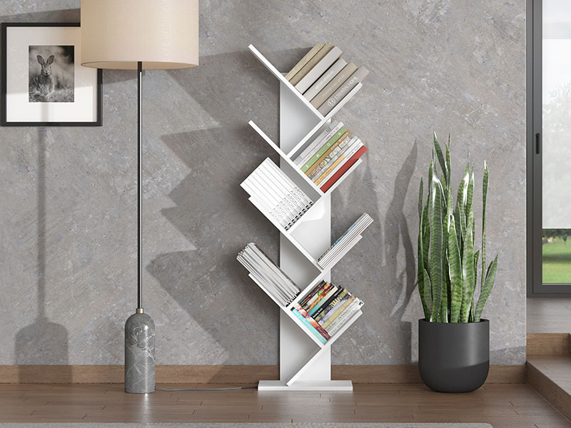 Otvorena polica MONOPOLI u opak belom dekoru poseduje segmente za odlaganje omiljenih knjiga i dekoracije. Praktično je rešenje za opremanje radnog ambijenta ili kao dopuna kompozicije u dnevnom boravku.