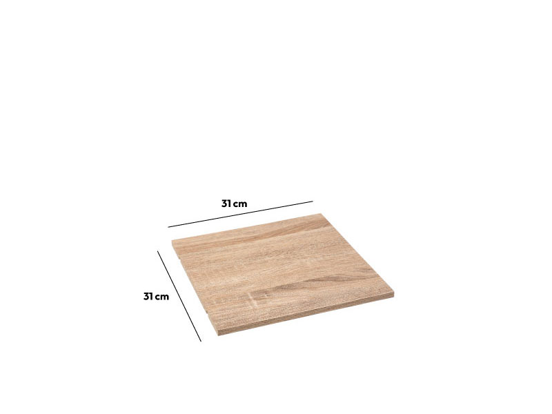 Polica FIVE 31x31x1,2 cm izrađena od drveta, spaja jednostavnost i funkcionalnost, pružajući praktično rešenje za organizaciju i dekoraciju prostora.