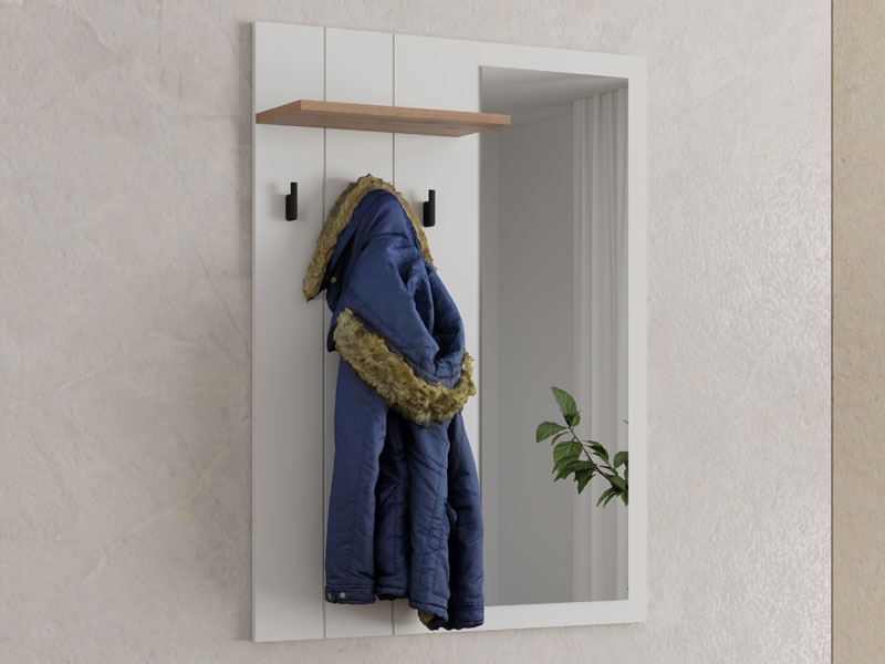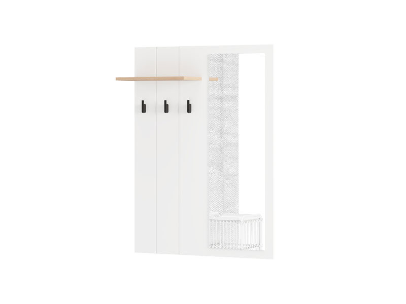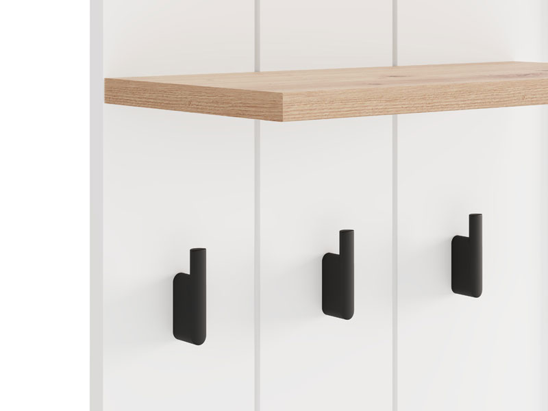Element predsoblja BEDFORD CIV OG, u kombinaciji opak belog dekora, artisan hrasta, bele mat folije i artisan hrast folije, predstavlja praktično i funkcionalno rešenje za ulazni prostor. Opremljen je čivilukom za odlaganje garderobe i ogledalom koje vizuelno povećava prostor i doprinosi osvetljenosti ulaza. Ovaj element se može kombinovati sa drugim delovima kolekcije BEDFORD, stvarajući skladnu i stilsku celinu predsoblja.