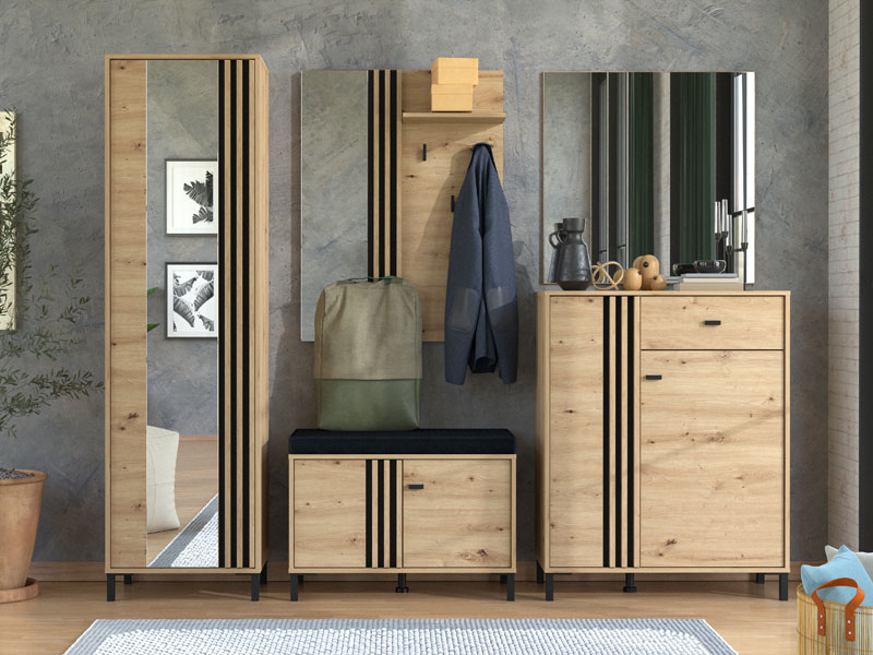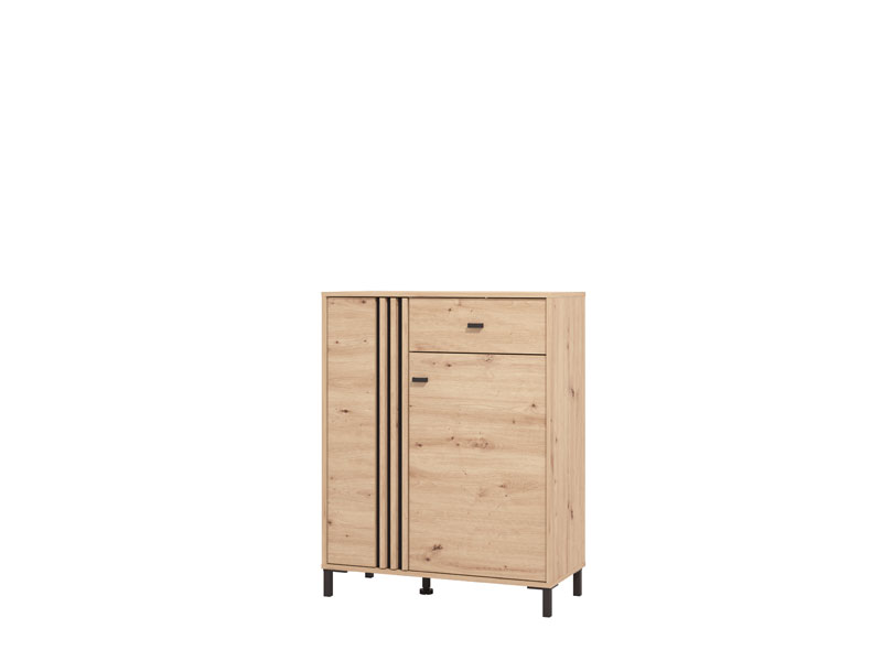 Element predsoblja LAVAL 2K1F2V, u kombinaciji dekora artisan hrasta, crnog dekora i artisan hrast folije, nudi dva pregradna zatvorena dela za odlaganje, kao i jednu fioku za sitnije predmete. Ovaj element se može kombinovati sa ostalim delovima kolekcije LAVAL, omogućavajući funkcionalnu i skladnu organizaciju ulaznog prostora.