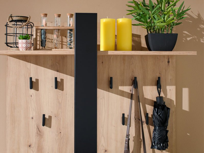 Predsoblje CAPITELLO, u kombinaciji artisan hrasta, crne boje i crne mat folije, učiniće da prvi suret sa enterijerom svakog doma bude efektan i prijatan. Upotrebni prostor čine zatvoreni i otvoreni deo za odlaganje obuće, tako da ćete postići funkcionalno organizovan prostor.