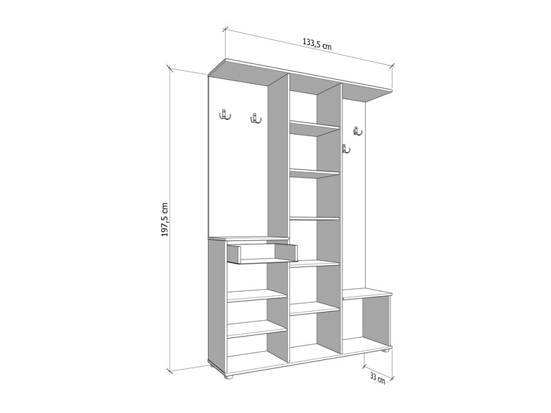 Predsoblje MARTIN, u tamna sonoma i sonoma hrast dezenu, učiniće da prvi suret sa vašim domom bude efektan i prijatan. Ovaj model poseduje skladno organizovan upotrebni prostor za odlaganje sezonske garderobe i obuće tako da ćete postići funkcionalno organizovan prostor, dok centralno pozicionirano ogledalo donosi osećaj prostranosti.