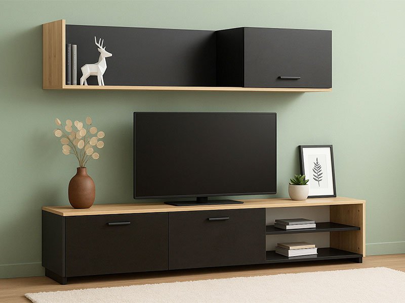 Tačan naziv dezena: korpus iverica artisan, front iverica crna. Regal BONGO, dizajniran je da zadovolji funkcionalne i estetske zahteve u uređenju ambijenta dnevnog boravka. Regal BONGO omogućava praktično opremanje dnevnog boravka, zahvaljujući upotrebnom prostoru koji čine kako otvorene, tako i zatvorene police za odlaganje, kao i prostor predviđen za TV uređaj i ostalu audio-vizuelnu opremu. Prostor za TV je : 180x40 cm.