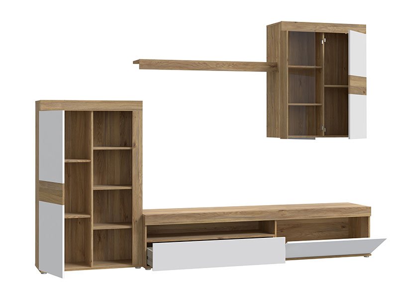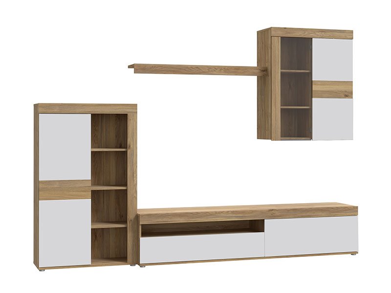 Tačan naziv dezena: konstrukcija iverica Mauvella oak / secret grey, front mdf Mauvella oak Regal MELIDES dizajniran je da zadovolji funkcionalne i estetske zahteve u uređenju ambijenta dnevnog boravka. Regal MELIDES omogućava praktično opremanje dnevnog boravka, zahvaljujući upotrebnom prostoru koji čine dva segmenta, podni i zidni, oba sa otvorenim i zatvorenim policama pogodnim za odlaganje važnih sitnica i dekoracije, kao i TV uređaja i audio-vizuelne opreme u donjem delu.
