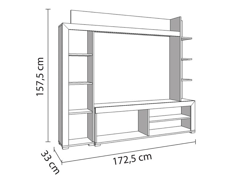 Regal RUBI u kombinaciji sivog hrasta i crnog dekora, predstavlja kompaktan model regala za funkcionalno i estetsko uređenje dnevnog boravka. Sastoji se od asimetričnih otvorenih polica različitih dimenzija i jedne zatvorene police, sa stabilnim delom za pozicioniranje TV uređaja. Prostor za TV je 116,5x84cm (do 55").
