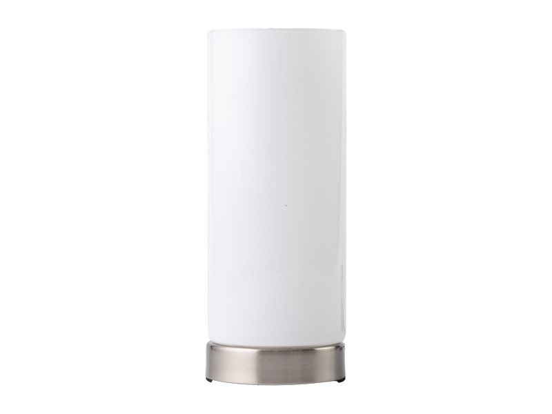 Stona lampa HET-HERU od belog stakla, elegantnog je i svedenog dizajna. Namenjena je za jednu sijalicu sa grlom E14, snage do 40W, i pruža prijatno, ravnomerno osvetljenje, idealna za spavaće sobe, radne stolove ili dekorativno osvetljenje.