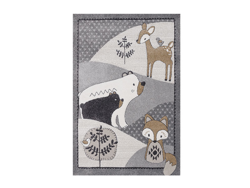 Tepih za dečiju sobu VEGAS KIDS neutralnih tonova sa motivima koji podstiču sigurnost i maštovitost, obezbeđuje udoban i topao prostor za igru, učenje i porodičnu zabavu. Može se lako uklopiti uz ostatak enterijera dečije sobe.