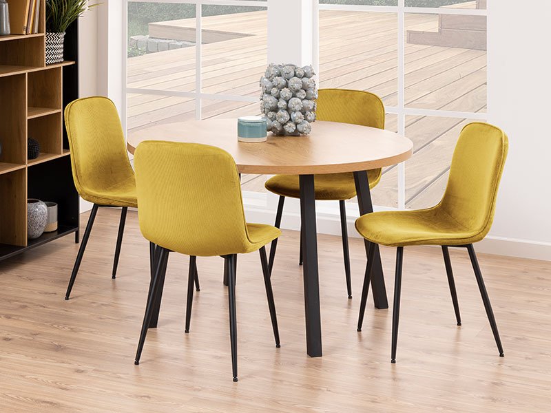 Tačan naziv dezena: konstrukcija metal crna, naslon / sedište štof Loyd žuta. Trpezarijska stolica DELMY idealno je rešenje za opremanje trpezarijskog prostora koji integriše komfor i funkcionalnost. Predstavlja novi koncept u dizajnu trpezariskih stolica.