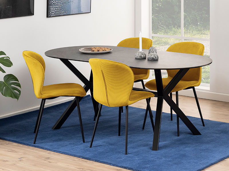 Tačan naziv dezena: konstrukcija metal crna, naslon / sedište štof Loyd žuta. Trpezarijska stolica EVELYN je moderno i dizajnerski atraktivno stilizovano rešenje za uređenje savremenih ambijenata doma. Pored funkcionalnosti, ističe se izraženom estetikom, koja će svaki trpezarijski prostor učiniti atraktivnim.