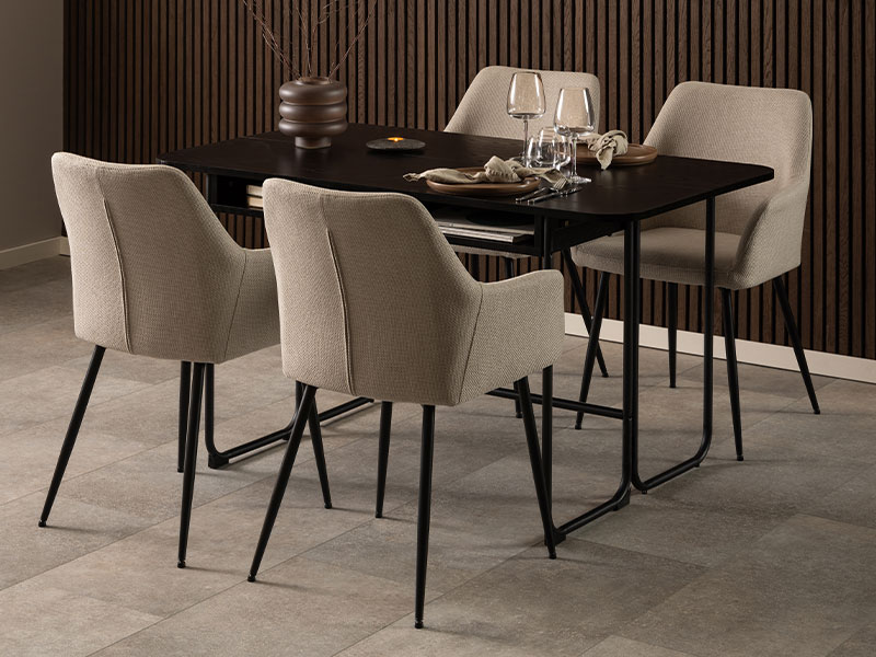 Tačan naziv dezena :konstrukcija drvo crna matt black, ploča MDF crna matt black Trpezarijski sto DARLINGTON elegantnog izgleda, idealno će se uklopiti u pročišćene i skladne enterijerske zamisli. Predstavlja pravo rešenje za funkcionalno i estetski dopadljivo uređenje trpezarijskog prostora.