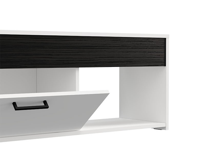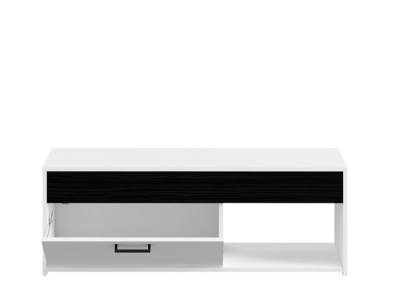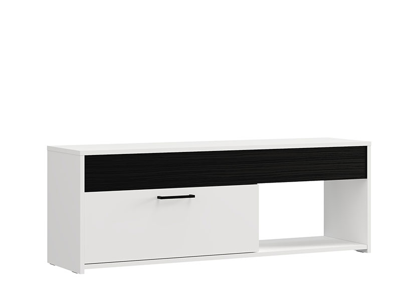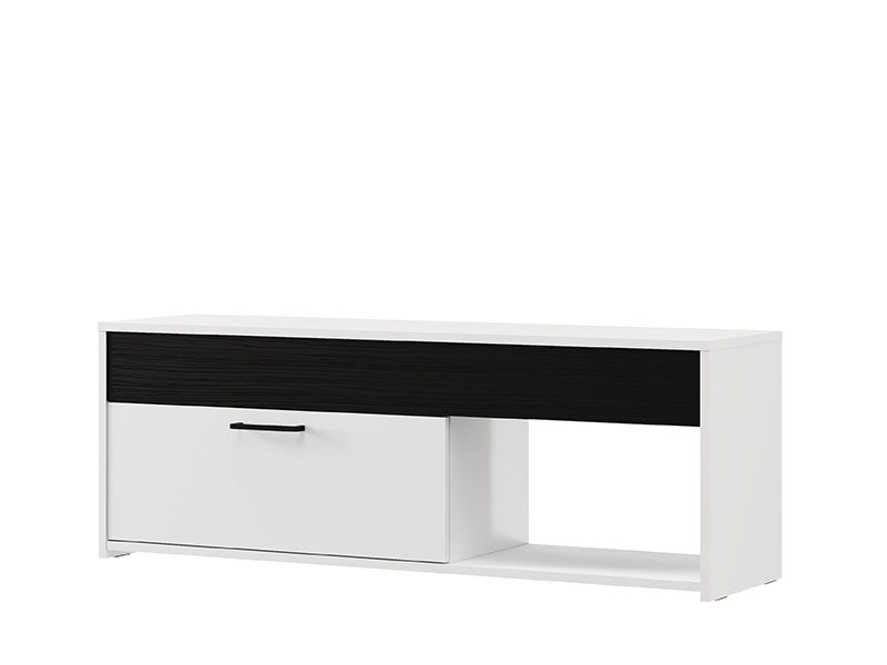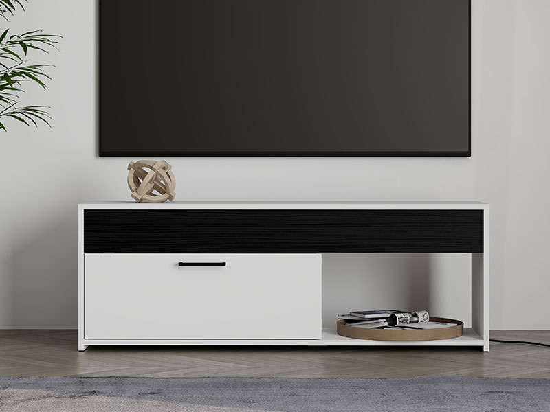 TV polica GROSSETO TV 122, u belom dezenu sa kombinacijom otvorenog dela i zatvorenog segmenta, prati praktične enterijerske inovacije koje će se idealno integrisati u ambijent vašeg dnevnog boravka.