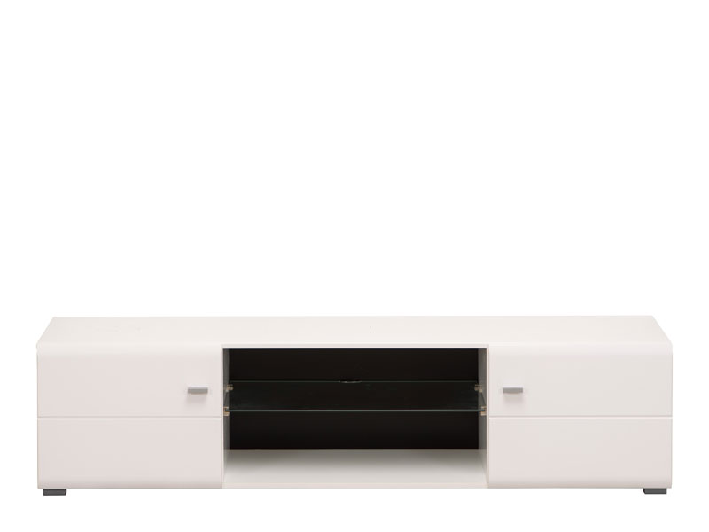 TV polica REX, u opak belom dezenu sa belom lak folijom, odraz je savremenog dizajna sa sofisticiranom notom koji će u potpunosti profilisati ambijent dnevne sobe. Poseduje bočno smeštene zatvorene delove i centralno pozicioniran otvoreni segment pogodan za audio-vizuelnu opremu.