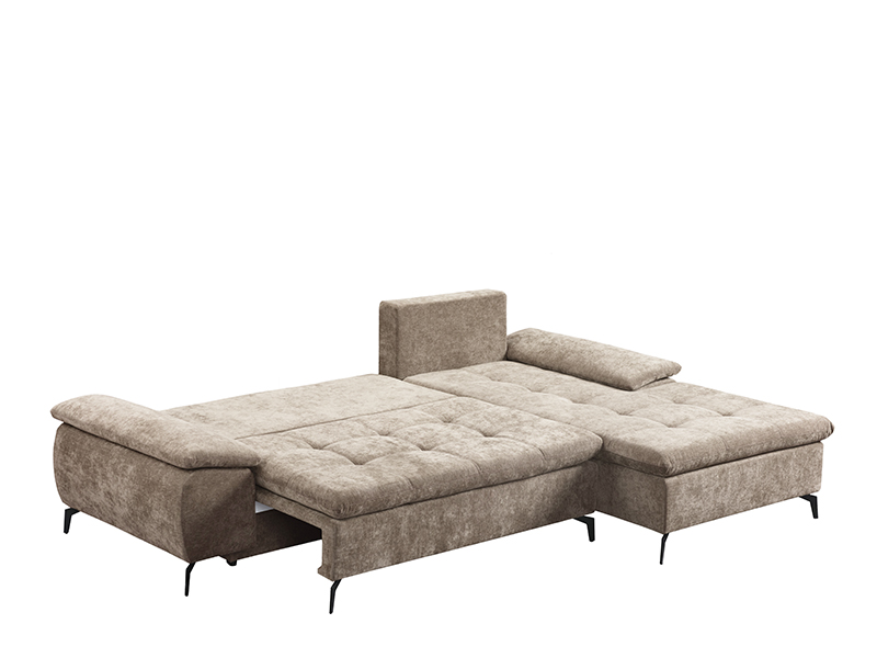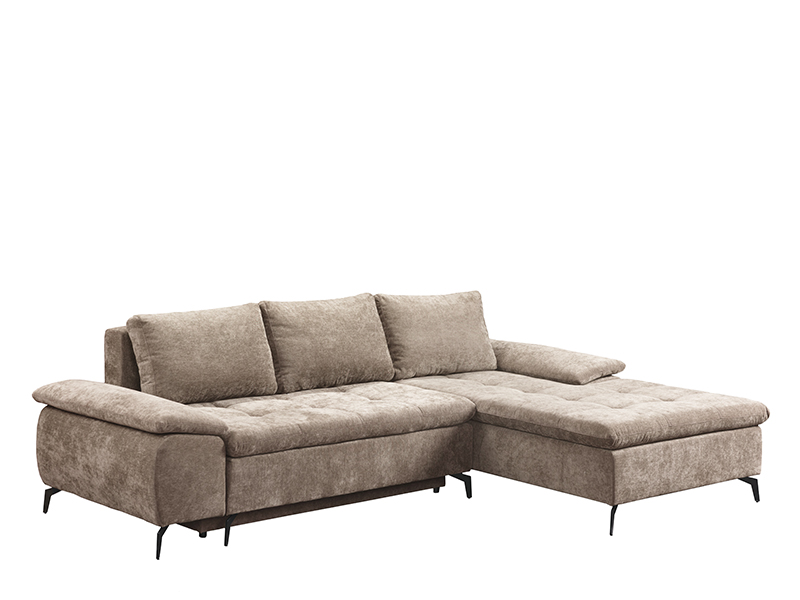 Tačan naziv dezena je: Štof WIND 11 svetlo braon, ugao desno. Ugaona garnitura ANDI odlikuje se modernim dizajnom i prostranošću, idealnom za savremeno uređen dnevni prostor. Praktičnim sistemom obaranja naslona lako se transformiše u ležaj sa površinom za spavanje dimenzija 134x200 cm. Izrađena je od sunđera, pružajući dobar nivo komfora u svakodnevnoj upotrebi. Garnitura poseduje kutiju za odlaganje, praktičnu za čuvanje posteljine i drugih stvari.