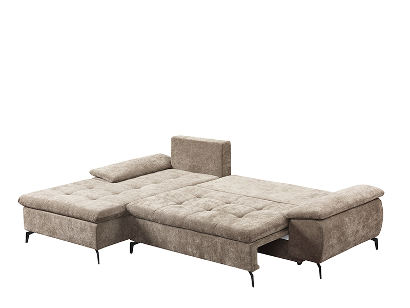 Tačan naziv dezena je: Štof WIND 11 svetlo braon, ugao levo. Ugaona garnitura ANDI odlikuje se modernim dizajnom i prostranošću, idealnom za savremeno uređen dnevni prostor. Praktičnim sistemom obaranja naslona lako se transformiše u ležaj sa površinom za spavanje dimenzija 134x200 cm. Izrađena je od sunđera, pružajući dobar nivo komfora u svakodnevnoj upotrebi. Garnitura poseduje kutiju za odlaganje, praktičnu za čuvanje posteljine i drugih stvari.