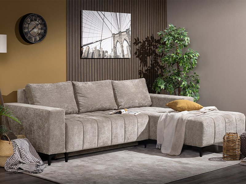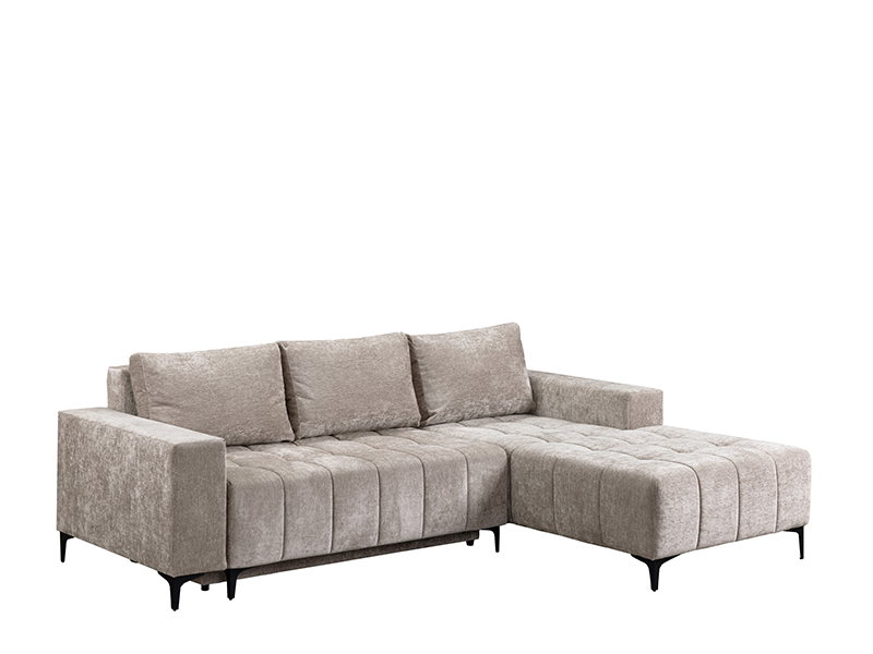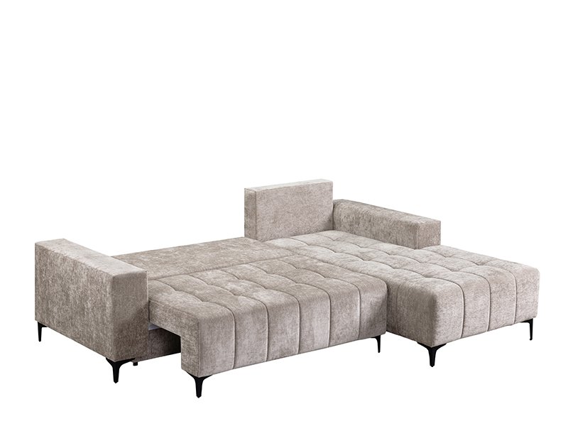 Ugaona garnitura BOGOTA odlikuje se modernim i elegantnim dizajnom, idealnim za savremeno uređen dnevni prostor. Praktičnim sistemom obaranja naslona lako se transformiše u ležaj sa površinom za spavanje dimenzija 134x200 cm. Izrađena je od sunđera, pružajući dobar nivo komfora u svakodnevnoj upotrebi. Garnitura poseduje jednu kutiju za odlaganje, pogodnu za čuvanje posteljine ili drugih potrebnih stvari.