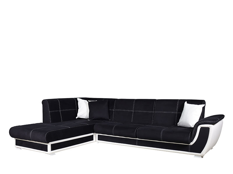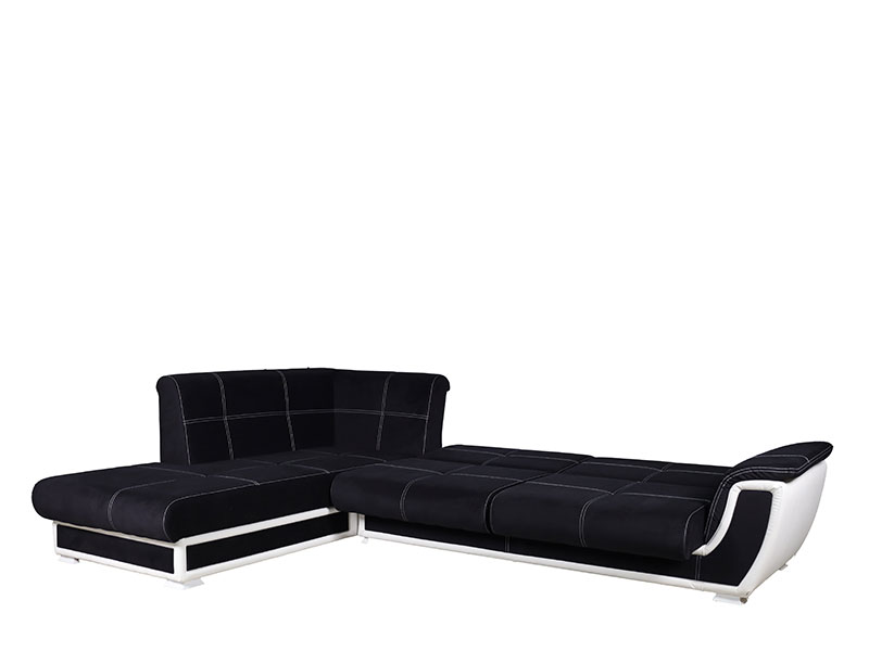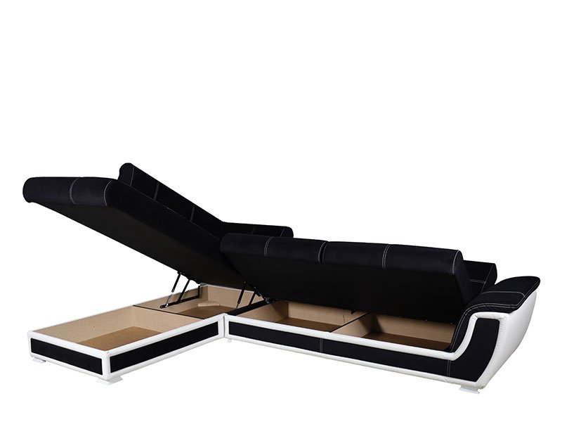 Tačan naziv dezena: rukonaslon / sedište / naslon štof soho 11 crna, mali jastuk štof soho 11/cayenne 1115 crna/bela, ugao levi. Ugaona garnitura CALIFORNIA je namenjena uređenju ambijenta dnevne sobe i po svom izgledu se uklapa u savremene trendove u uređenju enterijera. Poseduje mogućnost pretvaranja u ležaj za spavanje klik-klak mehanizom. Model ugaone garniture CALIFORNIA poseduje dve kutije za odlaganje posteljine.