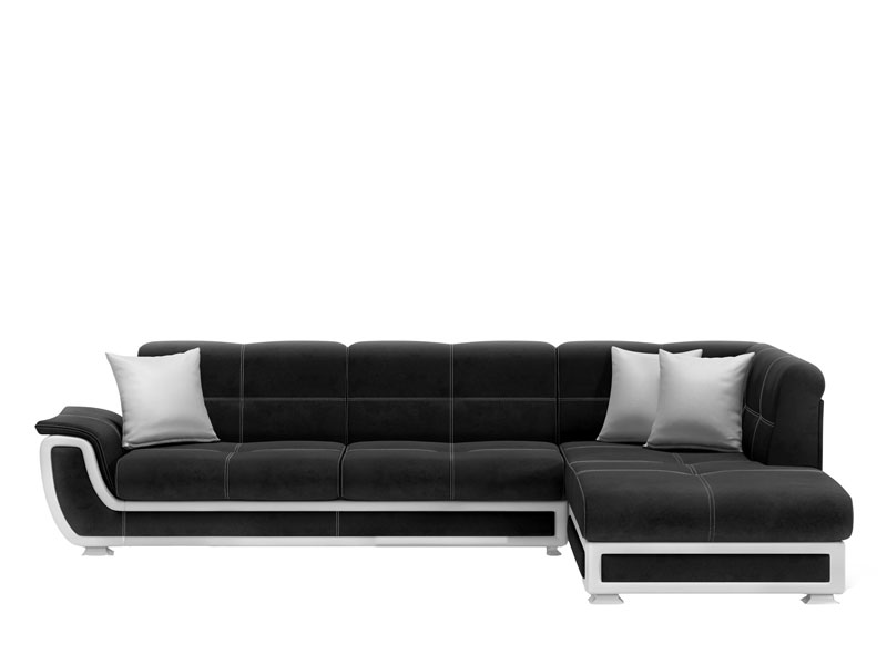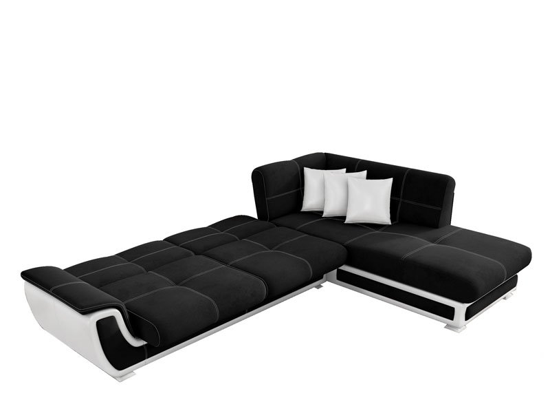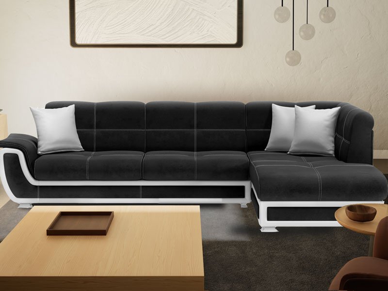 Tačan naziv dezena: rukonaslon / sedište / naslon štof soho 11 crna, mali jastuk štof soho 11/cayenne 1115 crna/bela, ugao desni. Ugaona garnitura CALIFORNIA je namenjena uređenju ambijenta dnevne sobe i po svom izgledu se uklapa u savremene trendove u uređenju enterijera. Poseduje mogućnost pretvaranja u ležaj za spavanje klik-klak mehanizom. Model ugaone garniture CALIFORNIA poseduje dve kutije za odlaganje posteljine.