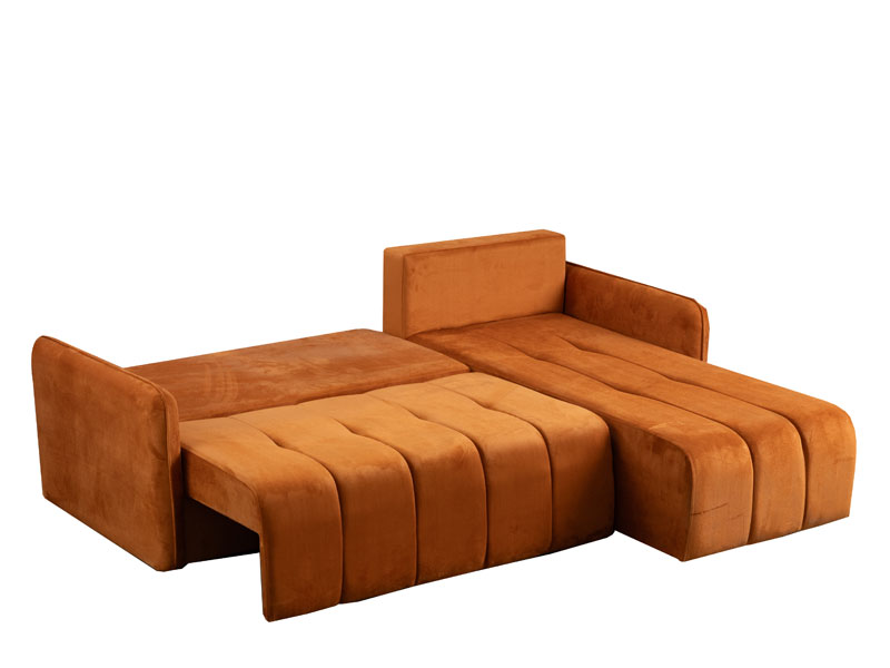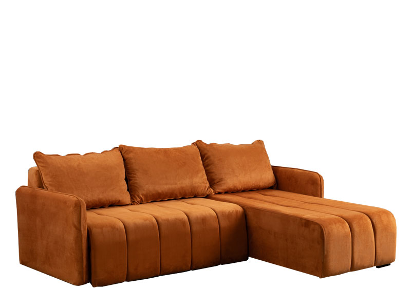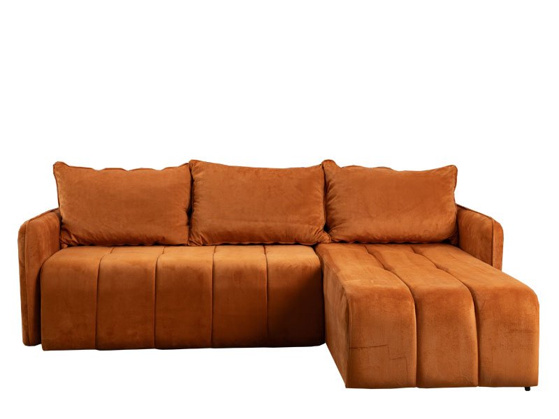 Tačan naziv dezena : sedište / naslon / rukonaslon / veliki jastuk štof babyface orange narandžasta. Ugaona garnitura GRANADA poseduje mogućnost pretvaranja u ležaj dimenzija 112x190 cm obaranjem naslona i, zahvaljujući svojim dimenzijama, predstavlja izuzetno praktično rešenje za opremanje životnog prostora. Prijatna dizajnerska nota koja se ogleda kroz savremeni svedeni stil, doprinosi fleksibilnom kombinovanju sa raznovrsnim komadima nameštaja. Model ugaone garniture GRANADA poseduje kutiju za odlaganje posteljine.