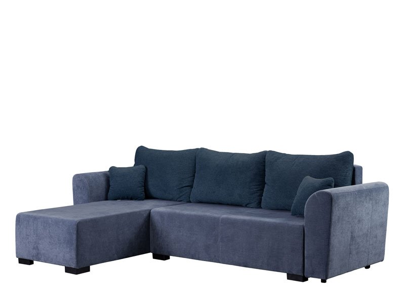 Tačan naziv dezena: rukonaslon/naslon/sedišre/veliki jastuk/mali jastuk štof soro 76 teget. Ugaona garnitura MIGROS svojom skladnom formom i dizajnom pravi je odgovor na višenamenske zahteve u opremanju dnevne sobe koja će se jednostavno transformisati u zonu za odmor zahvaljujući mogućnosti razvlačenja obaranjem naslona sa površinom za spavanje dimenzija 130x225 cm. Benefit ovog modela ugaone garniture je jedna kutija za odlaganje posteljine.