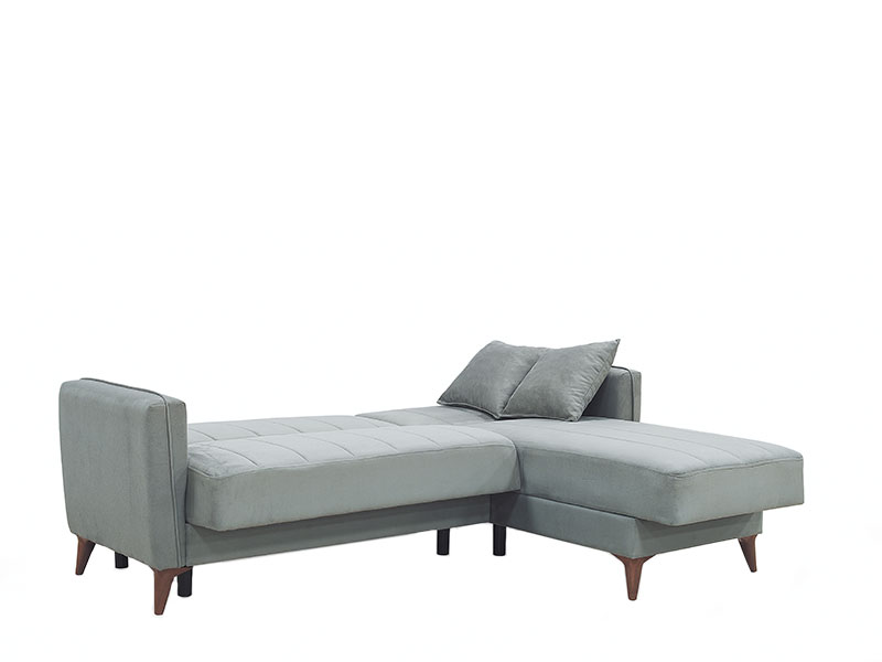 Tačan naziv dezena: sedište/naslon/rukonaslon/mali jastuk štof siva 50-003. Ugaona garnitura SOFO zahvaljujući klik-klak mehanizmu poseduje mogućnost pretvaranja u ležaj, površine za spavanje 111x200cm, što ga čini izuzetno praktičnim rešenjem za opremanje životnog prostora. Prijatna dizajnerska nota koja se ogleda kroz savremeni svedeni stil, doprinosi fleksibilnom kombinovanju sa raznovrsnim komadima nameštaja. Model ugaone garniture SOFO poseduje dve kutije za odlaganje posteljine.