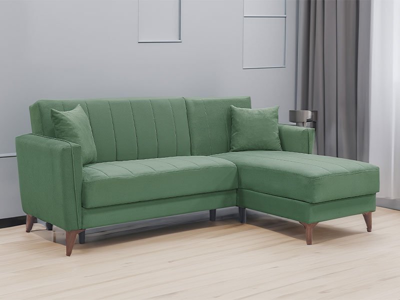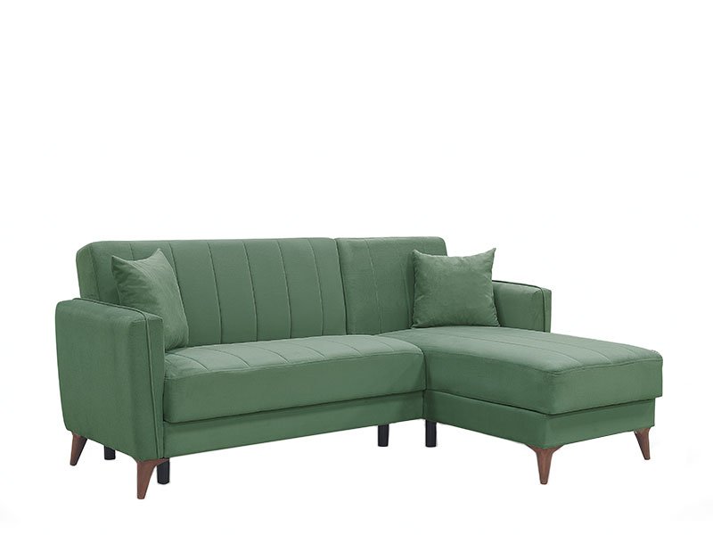 Tačan naziv dezena: sedište/rukonaslon/mali jastuk štof 47-003 zelena. Ugaona garnitura SOFO je namenjena uređenju ambijenta dnevne sobe i po svom izgledu se uklapa u savremene trendove u uređenju enterijera. Poseduje mogućnost pretvaranja u ležaj za spavanje klik-klak mehanizom površine 111x200 cm. Model ugaone garniture SOFO poseduje dve kutije za odlaganje posteljine i ima mogućnost odabira ugla pri montaži.