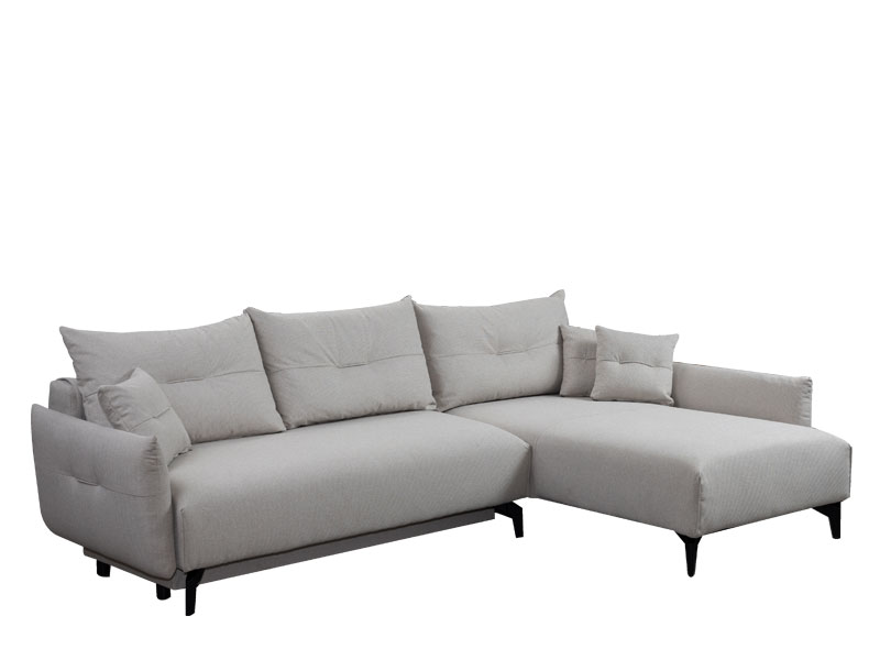 Tačan naziv dezena: rukonaslon / sedište / naslon / veliki jastuk / mali jastuk štof barrel 04 svetlo bež, ugao desno. Ugaona garnitura STOCKHOLM poseduje mogućnost pretvaranja u ležaj dimenzija 135x251 cm obaranjem naslona i, zahvaljujući svojim dimenzijama, predstavlja izuzetno praktično rešenje za opremanje životnog prostora. Prijatna dizajnerska nota koja se ogleda kroz savremeni svedeni stil, doprinosi fleksibilnom kombinovanju sa raznovrsnim komadima nameštaja. Model ugaone garniture STOCKHOLM poseduje kutiju za odlaganje posteljine.