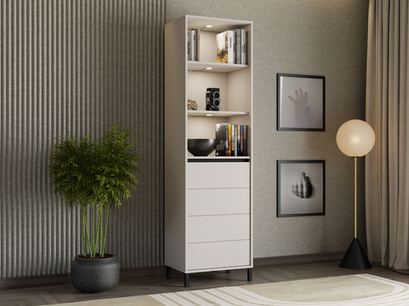 Vitrina MARRON 1K1V POP 193 u kombinaciji dekora kašmira i crne mat folije unosi u prostor moderan vizuelni kontrast i sofisticiranu toplinu. Upotrebni prostor čine jedan zatvoreni pregradni deo i tri otvorene police, koje omogućavaju praktično i organizovano odlaganje dekorativnih predmeta, knjiga i drugih sitnica. Vitrina MARRON 1K1V POP 193 je deo sistema elemenata MARRON, koji odlikuje sklad modernih tonova i funkcionalnost savremenog dizajna. Ima mogućnost ugradnje dodatne LED rasvete, čime se prostor dodatno naglašava i osvetljava.