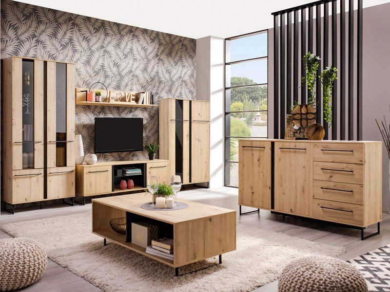 Vitrina SARDINIA 2K VS2 je spoj topline naturalnog i rustičnog artisan hrasta sa primesama suptilnih crnih elemenata dekora, kao karakteristike industrijskog stila u dizajnu enterijera. Ova dvokrilna funkcionalna vitrina sastoji se od sistema polica raspoređenih u donjem zatvorenom i gornjem, prostranijem, poluzastakljenom delu. Deo je istoimene kolekcije SARDINIA sa kojom čini enterijersku celinu, a koja u vaš dom unosi odraz autentičnog i odvažnog životnog stila. Postoji mogućnost ugradnje dodatne rasvete.