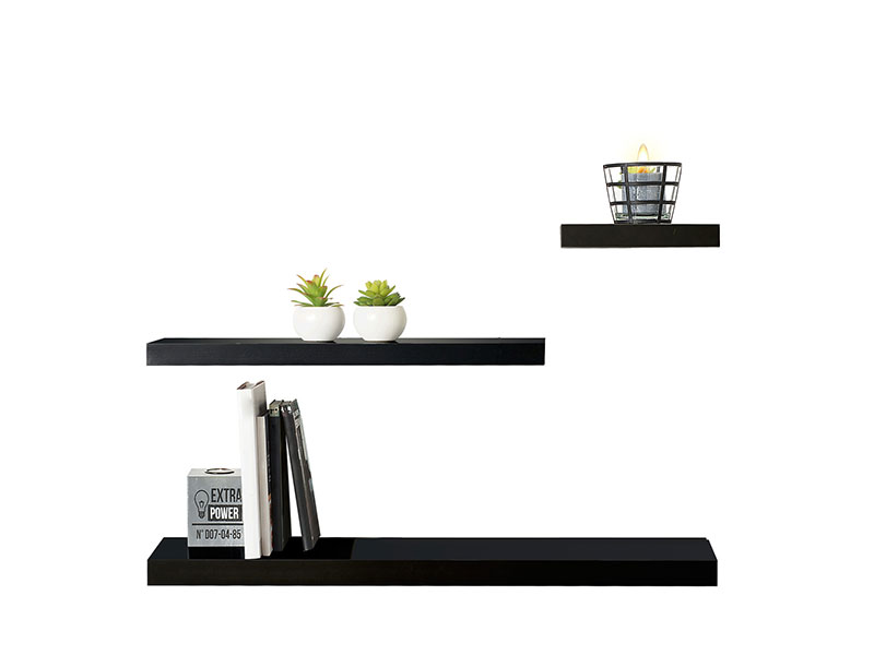 Zidna polica FIVE u crnom dekoru ima praktičnu namenu i može poslužiti za odlaganje dekorativnih detalja, kao i predmeta koji su u svakodnevnoj upotrebi.