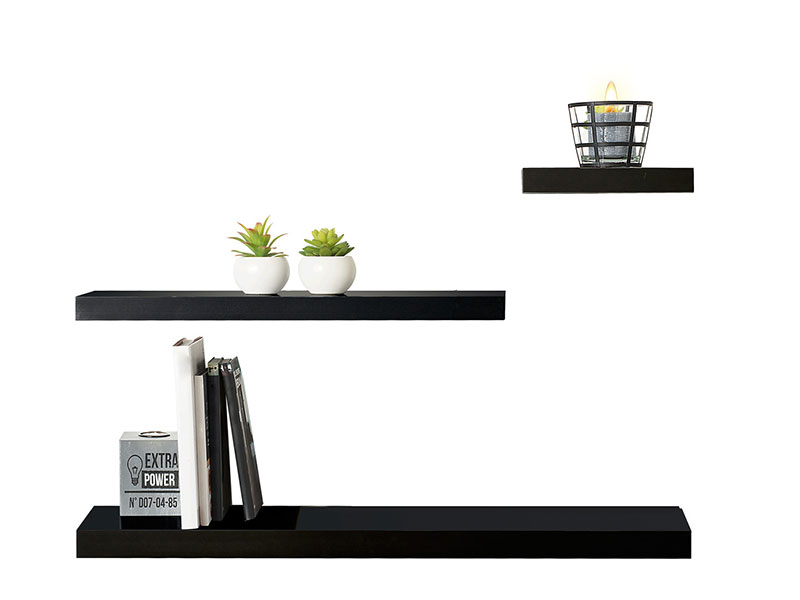 Zidna polica FIVE u crnom dekoru ima praktičnu namenu i može poslužiti za odlaganje dekorativnih detalja, kao i predmeta koji su u svakodnevnoj upotrebi.