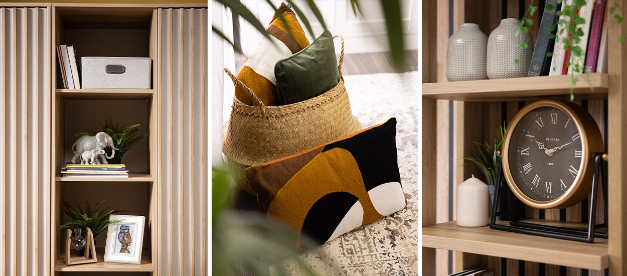 Za potpuni užitak u domu, bitno je iskoristiti prazne police ili uglove prostorija. U dnevnoj sobi je pre svega važno odabrati odgovarajući tepih – moderan, zanimljiv i estetski lepo uklopiv tepih SAGA može biti pravi izbor. Takođe, možete iskoristiti ugao dnevnog boravka ili prazno mesto kraj ugaone garniture, odnosno sofe, kako biste postavili pletenu korpu ATMOSPHERA sa dekorativnim jastucima, različitih veličina, materijala i oblika.