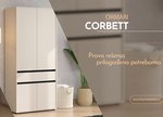 Kolekciju ormara CORBETT čine četiri različita modela u dve kombinacije dekora – artisan hrast i crna mat folije, kao i kašmiri crna mat folija. Sva četiri modela ormara CORBETT odlikuje drugačiji raspored upotrebnog prostora koji čine delovi sa garderobnim šipkama, policama, kao i deo sa fiokama. Svi modeli poseduju ogledalo koje ne samo da ima upotrebnu, već i estetsku vrednost.