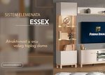 Sistem elemenata ESSEX za opremanje dnevnog boravka predstavlja atraktivno ambijentalno rešenje. Kombinacija dekora artisan hrasta i kašmira je dominantna i doprinosi toplini ambijenta, dok suptilno implementiran dekor artisan hrasta sa crnim prugicama značajno doprinosi atraktivnosti ovog sistema elemenata. Sistem elemenata ESSEX se sastoji od 7 elemenata koji su kompletno rešenje za opremanje dnevne sobe. Pojedini elementi sistema poseduju mogućnost dodavanja rasvete.